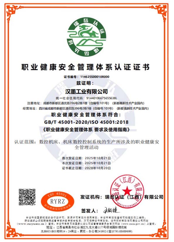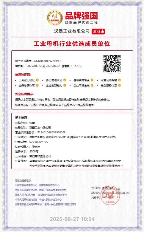 Hanmo Industry Co., Ltd. was established in 2008, with its headquarters located in the High-tech Industrial Park of Xindu District, Chengdu City. The company's main business includes high-end intelligent equipment, manufacturing of mother machines for general industrial equipment, industrial integration, and digital technology services. The company's products cover core models such as multi-channel and multi-axis linkage turning and milling compound CNC machine tools, five-axis machining centers, ultra-high-speed vertical machining centers, and gantry machining centers. They focus on solving high-precision and cutting-edge technological problems in fields such as aerospace, shipbuilding, and new energy vehicles, filling domestic technological gaps.